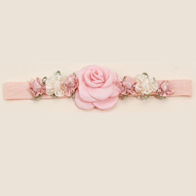 Mimisu - شريط راس بتصميم زهور للاطفال حديثي الولادة من ميميسو، اكسسوارات شعر للاطفال الرضع (زهري، زهري فاتح)