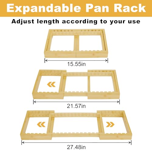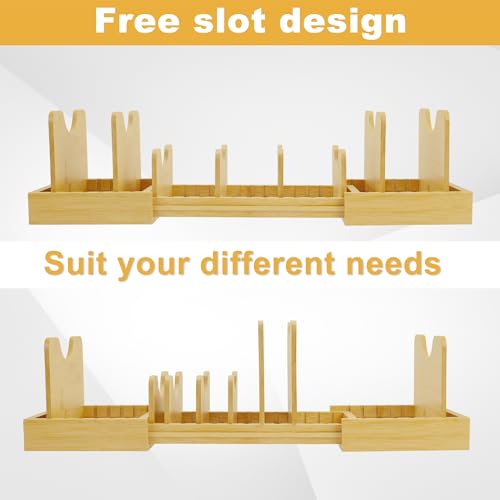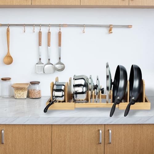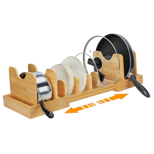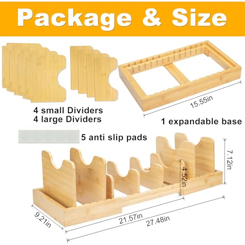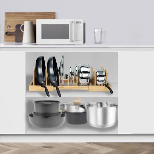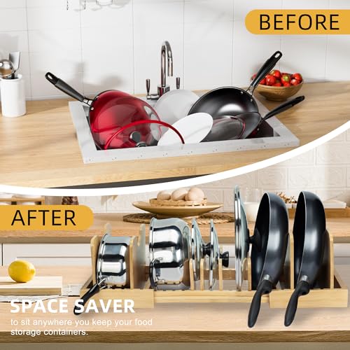 MinBoo - مينبو منظم غطاء وعاء قابل للتوسيع من الخيزران ادراج للاواني والمقالي لاغطية الاواني فواصل قابلة للتعديل لمنظمات خزانة المطبخ والتخزين طبيعي
