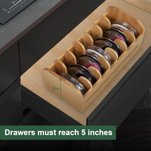 MinBoo - مينبو منظم اغطية اكواب من الخيزران، 5.5 انش طول × 5 انش عرض × 10 انش ارتفاع، مثالي لتنظيم خزانة المطبخ والادراج وسطح الطاولة