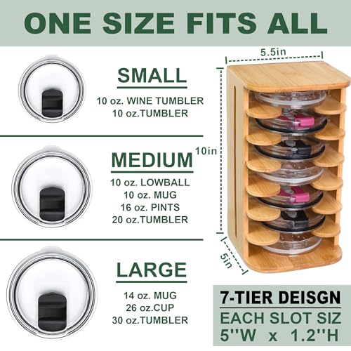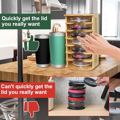 - تخزين مثالي للأغطية - مصمم بشكل مبتكر لاستيعاب أي حجم ونوع من أغطية الأكواب. يحافظ على الأغطية خالية من الغبار ومرتبة، وتتبع واختيار أغطية زجاجات المياه بشكل أفضل للحفاظ على المنزل مرتبًا مع حامل منظم الأغطية المصنوع من الخيزران.