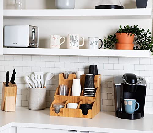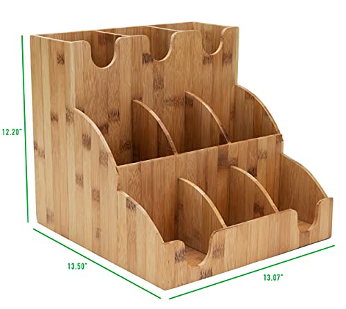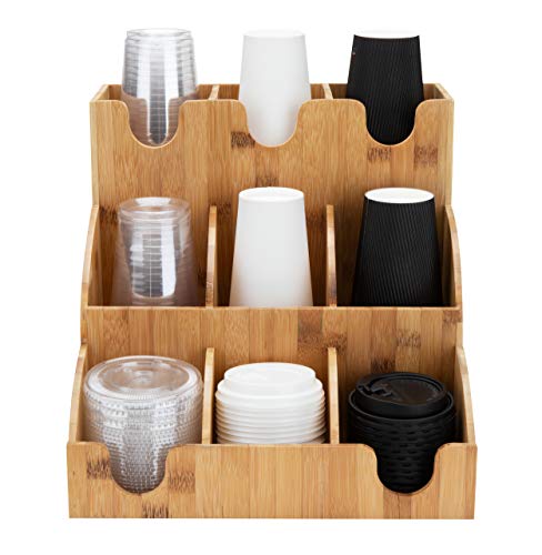 Mind Reader - حامل ومنظم متعدد المستويات للبهارات مكون من 9 أقسام لأكواب المشروبات الساخنة أو الباردة للاستعمال مرة واحدة والأغطية وأدوات تناول الطعام والشفاطات والخيزران من مايند ريدر، لون بني