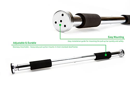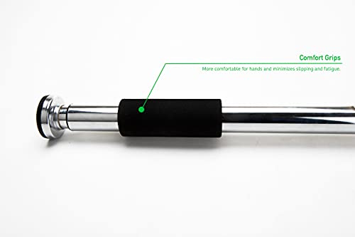 - آمنة وقابلة للتعديل - بسيطة وسهلة التركيب أو الفك والتخزين عندما تكون هناك مساحة محدودة. يوفر قضيب السحب شديد التحمل هذا المصنوع من الكروم الصلب وحوامل الأبواب دعمًا وأمانًا كبيرًا. لف قابل للتعديل ليناسب أحجام الأبواب المختلفة.
