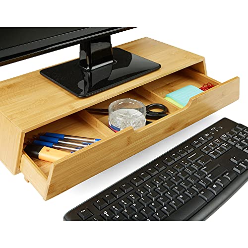 - منظم وحامل لسطح المكتب من البامبو خفيف الوزن وشديد التحمل: حوامل الشاشة المتينة والقوية من البامبو خفيفة الوزن للنقل وسهلة التخزين وتناسب معظم شاشات العرض المسطحة أو أجهزة التلفزيون وأجهزة اللاب توب والطابعات وغيرها.