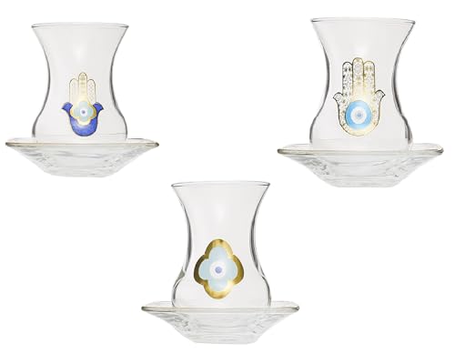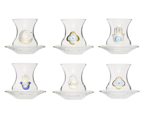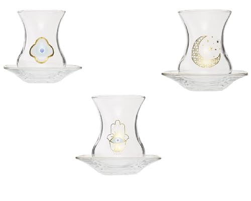 IntProcess - طقم أكواب وصحون شاي ليال أورورا - أنماط متنوعة، 155 مل - طقم من 6 قطع من ميندادا
