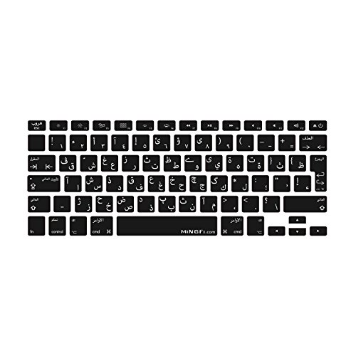 MiNGFi - غطاء كيبورد كويرتي باللغة العربية من السيليكون لماك بوك برو 13 و15 و17 بوصة الومنيوم يوني بودي وماك بوك اير 13 بوصة بتصميم اوروبي/ISO اسود من مينجفي