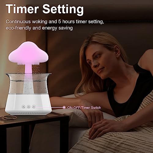 MINGPINHUIUS - مرطب هواء بتصميم سحابة مطر لغرفة النوم وغرفة الأطفال، موزع زيت الفطر مع 7 ألوان إضاءة LED ليلية (مع جهاز تحكم عن بعد)