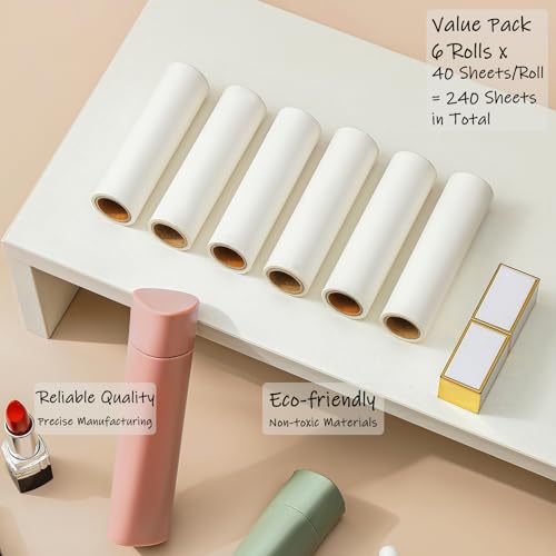 MINGRACE - عبوات إعادة التعبئة بكرة إزالة الوبر مقاس 9 سم من مينجراس، بكرات إزالة الوبر قابلة للسحب ومناسبة للسفر، 6 بكرات × 40 ورقة/بكرة إجمالي 240 ورقة، لاصقة للغاية وسهلة التقشير