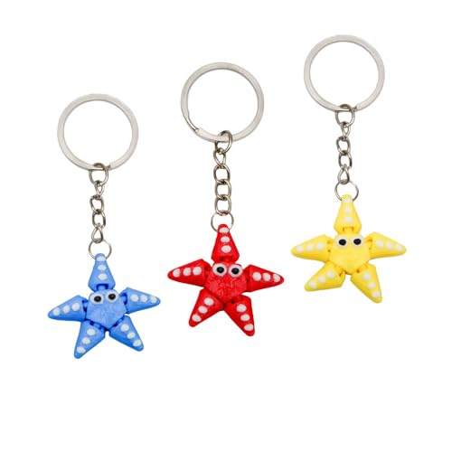 Generic - مجموعة من 3 قطع بتصميم حيوانات صغيرة مطبوعة ثلاثية الابعاد ملونة ونجم البحر بلون ازرق واحمر واصفر، ميداليات مفصلية متحركة، هدية لأحبائك من العلامة التجارية ثلاثية الابعاد فيكتا ويجليتز