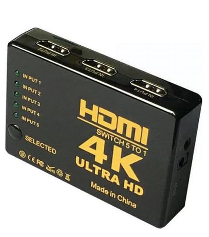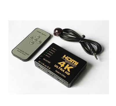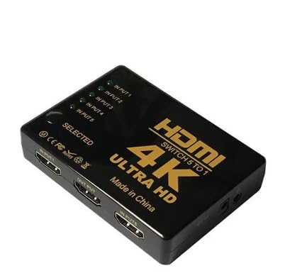 Generic - محول فيديو HDMI صغير بـ 5 منافذ بدقة 4K – جهاز تحويل وتبديل HDMI يعمل بالتحكم عن بُعد بالأشعة تحت الحمراء، بوكس موزّع، لون أسود
