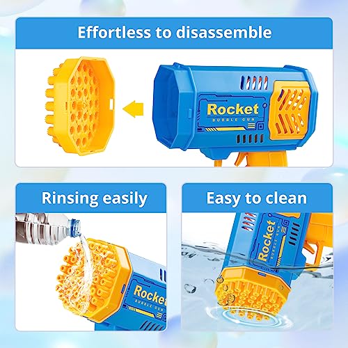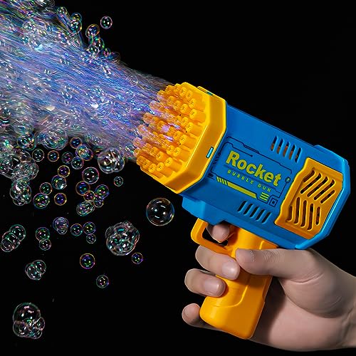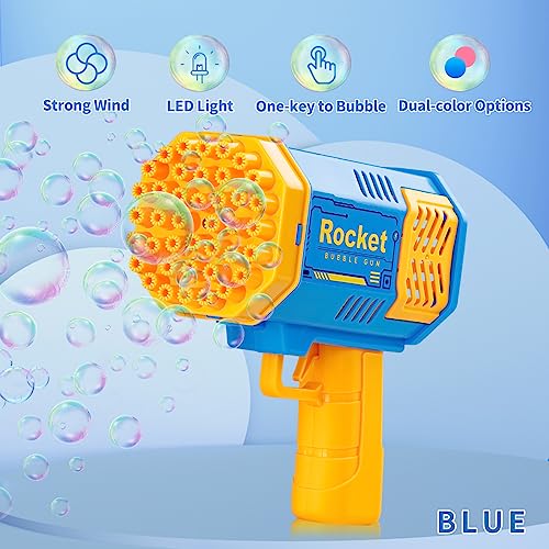 bessome - مسدس بازوكا صغير لصنع الفقاعات للصيف، منفاخ فقاعات صاروخي، صانع فقاعات على شكل قاذفة صواريخ، ألعاب خارجية للأطفال الصغار من عمر 4 إلى 8 سنوات، هدايا للأولاد والبنات من عمر 3 إلى 7 سنوات (أزرق)