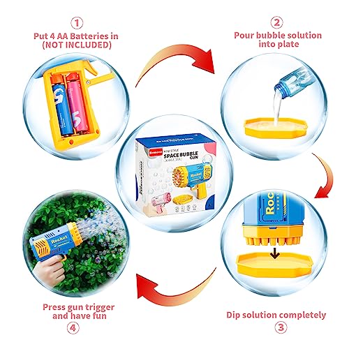 - 【تصميم جيد】يحتوي مسدس الفقاعات الصغير الخاص بنا على 40 فتحة للفقاعات وضوء، ويمكنه نفخ آلاف الفقاعات الملونة في الدقيقة دون وجود مشكلة تسرب الماء.
