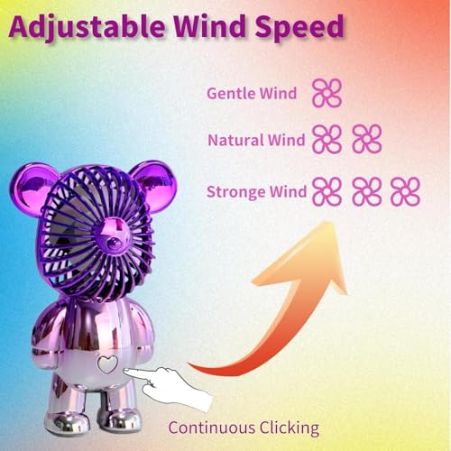 - ✨رياح قوية و3 سرعات قابلة للتعديل: تتميز مروحة الدب الصغيرة المحمولة هذه بثلاث سرعات قابلة للتعديل، ويمكنك تغيير إعداد السرعة بمجرد الضغط على زر التشغيل. السرعة الأولى هي رياح ناعمة، والثانية هي رياح طبيعية، والثالثة هي رياح قوية. مستوى الضوضاء أقل من 15dB، وهادئ جدًا.