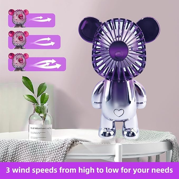 - 💕تصميم على شكل دب لطيف: المروحة الصغيرة هذه على شكل دب تتميز بلون متدرج عصري مع طلاء عالي الجودة وتصميم شبكي. تعتبر هذه المروحة التي تعمل بالبطارية ضرورية لقضاء العطلات لإبقائك منتعشًا في أيام الصيف الحارة. هذه المروحة العملية اللطيفة ليست مجرد مروحة، ولكنها أيضًا عنصر زخرفي لتزيين سطح المكتب أو غرفة النوم أو رف الكتب الخاص بك.