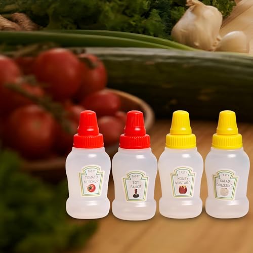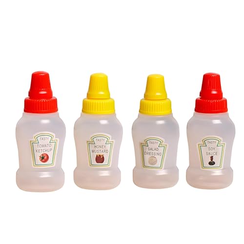 Generic - زجاجات صغيرة - 4 زجاجات كاتشب قابلة لاعادة الملء، 0.8 اونصة، موزعات توابل قابلة للضغط لصلصات السلطة، صندوق بينتو للطماطم، حاويات شراب المايونيز لتناول الطعام (4 قطع من اللون الموضح)