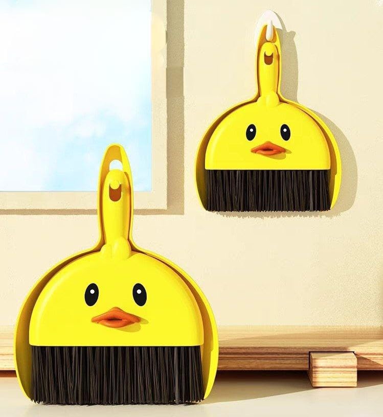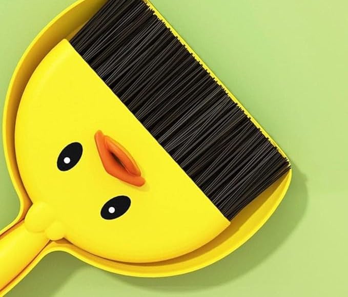 - تصميم مبتكر وجذاب: مكنسة يد صغيرة بتصميم لطيف مع جاروف مدمج، مثالية لتنظيف المطبخ والطاولة من الفتات والأوساخ الصغيرة