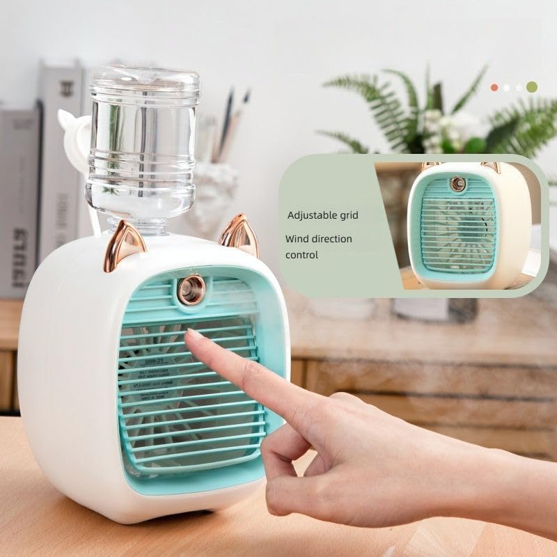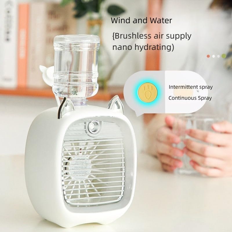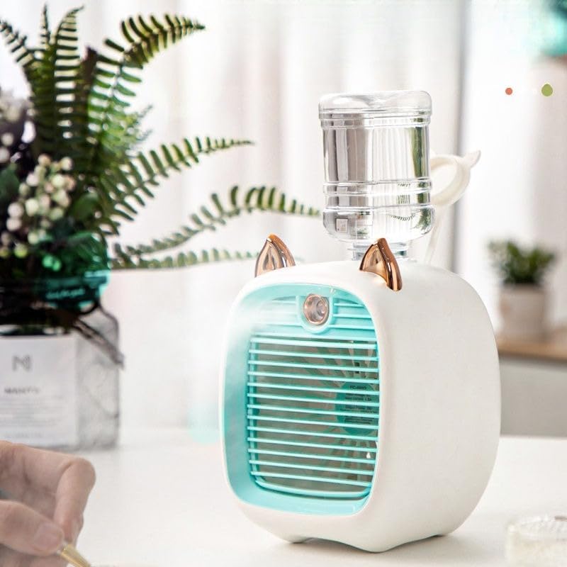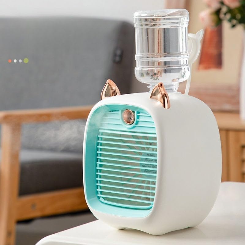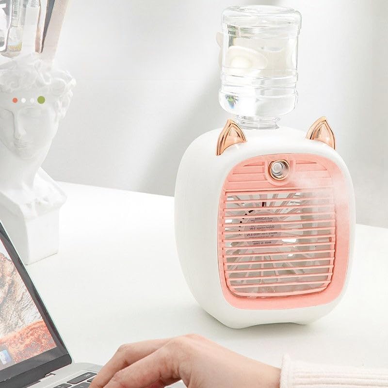 Generic - مروحة مكتبية صغيرة بشكل قط مع مرطب هواء وعلبة ماء – مروحة USB محمولة بتصميم لطيف، تبريد وترطيب للمنزل أو المكتب، صامتة وصديقة للأطفال