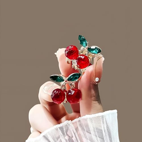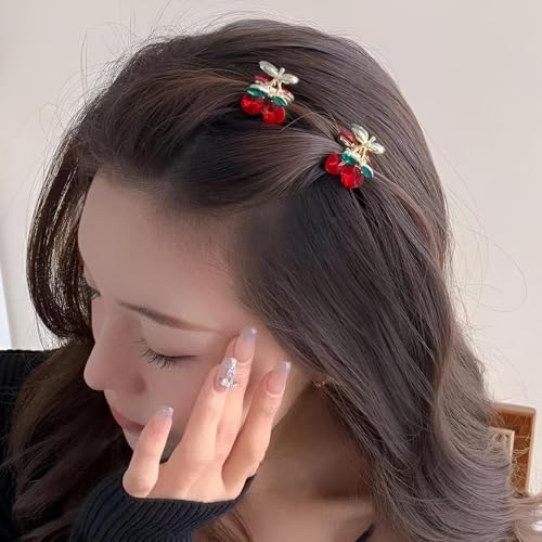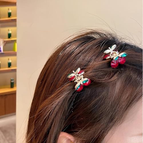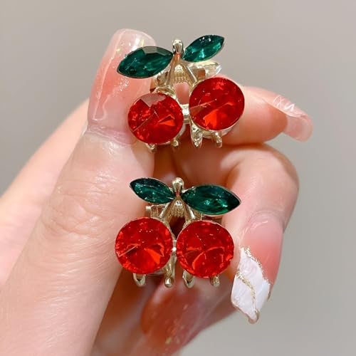 Generic - مشبك شعر ميني تشيري - مشابك شعر صغيرة لطيفة للنساء والفتيات الصغار، مشابك شعر كريستالية حمراء غير قابلة للانزلاق للشعر الرقيق او الكثيف، اكسسوارات شعر عصرية للحفلات اليومية