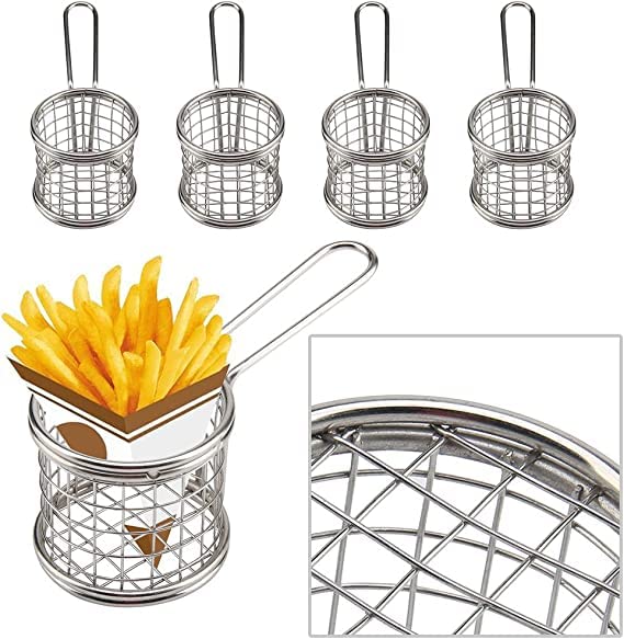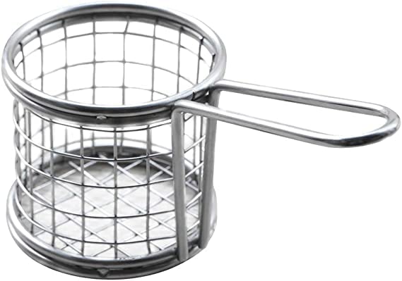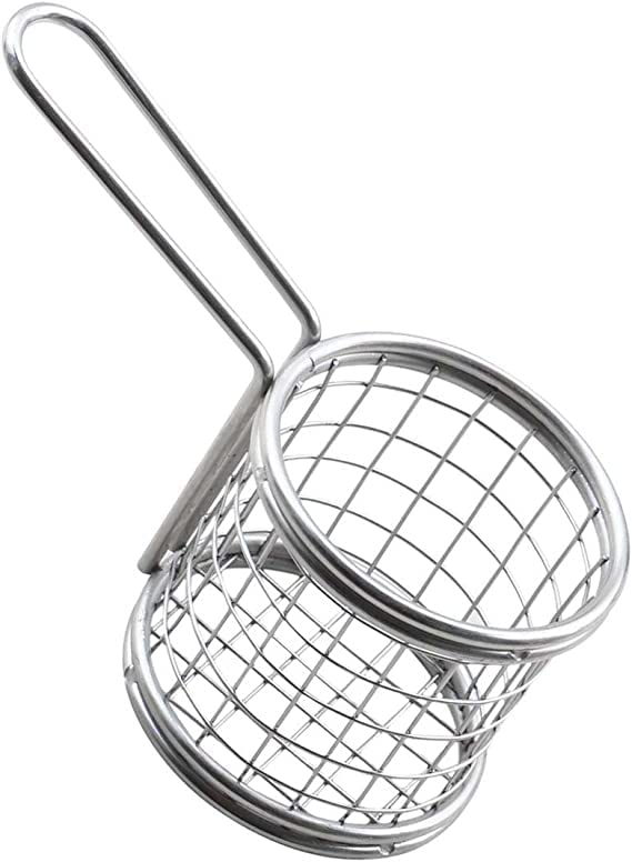 Spaceshoop - سلة قلاية صغيرة مستديرة من الكروم لتقديم رقائق البطاطس للمطابخ والمطاعم، قطعة واحدة بلون فضي