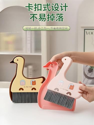 Generic - مجموعة تنظيف صغيرة - مكنسة وجاروف متعددة الاغراض بتصميم بطة كرتونية للمساحات المزدحمة، مثالية للمنزل او المكتب او السيارة، ابعاد 23 × 18 سم (متعددة الالوان)