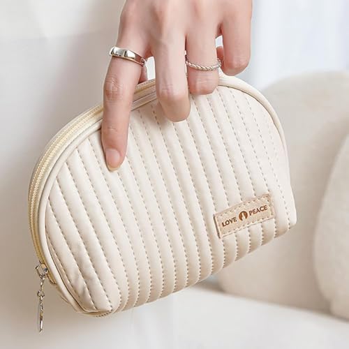 fashion mania - شنطة مستحضرات تجميل صغيرة، شنطة مستحضرات تجميل صغيرة من جلد البولي يوريثين بتصميم لطيف، شنطة مستحضرات تجميل صغيرة مع سحاب للسفر والمدرسة، شنطة مكياج للسفر للنساء