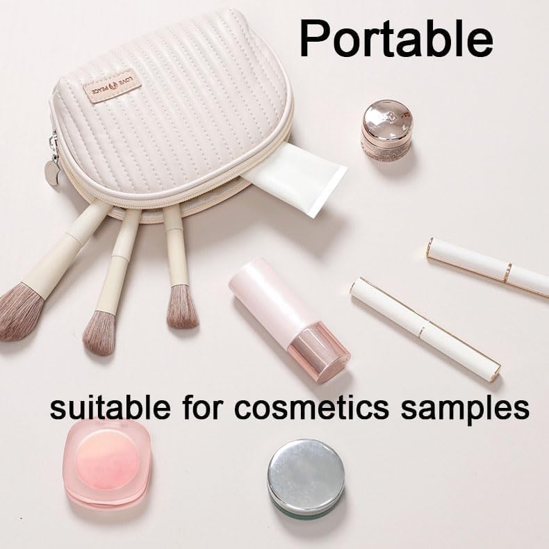 - 【ملمس ناعم】: شنطة مكياج للسفر مصنوعة من قماش جلدي مقاوم للماء، ناعمة الملمس. رأس السحاب مصنوع من معدن مقاوم للصدأ، والسحاب ناعم ومتين. يمنحك التصميم الكلاسيكي شبه الدائري مع جلد البولي يوريثين الناعم شعورًا بقرص الكعكة، إسفنجي ومريح.