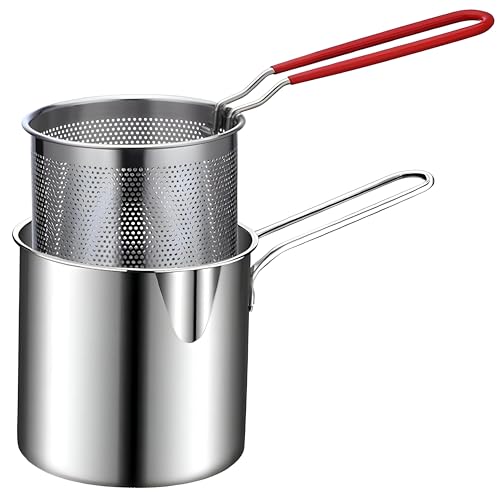 Generic - مقلاة عميقة صغيرة - حلة قلي موفرة للمساحة مع سلة ستانلس للبطاطس المقلية والأجنحة والروبيان والسمك والزبدة والصلصلة والمكرونة