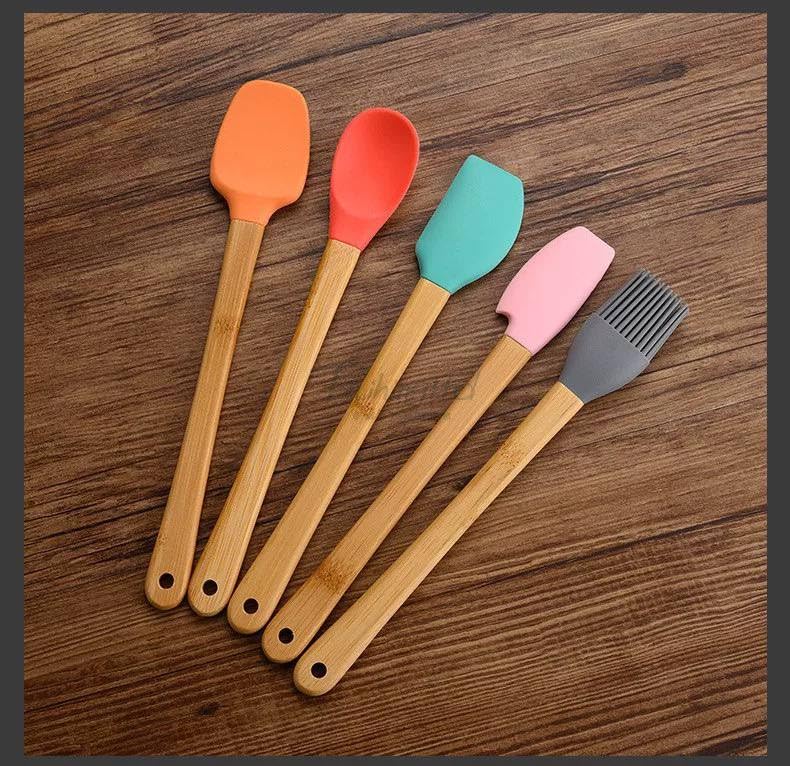 Generic - طقم توزيع ميني 5 قطع بألوان مختلفة – أدوات مطبخ عالية الجودة (فرشة زيت، سكينة، ملعقة، شيالة، سباتولا)
