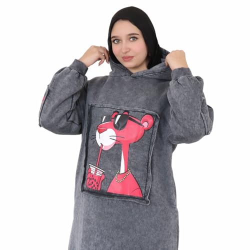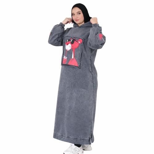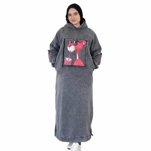 Generic - ميني دريس حريمي خامه ميلتون بتصميم محجّر وطباعة مستوحاة من الجينز تلبيس وان سايز حتي 90 كجم