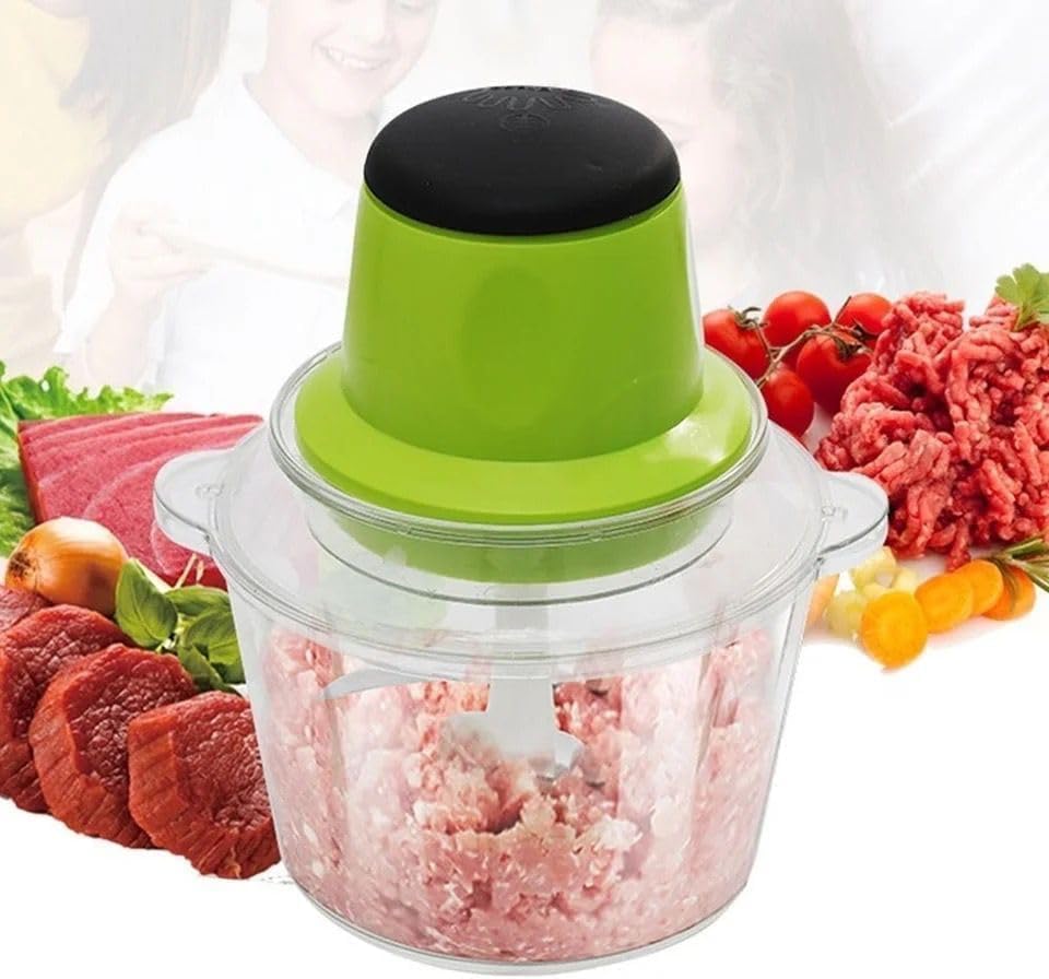 Generic - مفرمة طعام كهربائية صغيرة بقدرة عالية – وعاء زجاجي سعة 2 لتر – تصميم أنيق باللون الأخضر – مفرمة خضروات ولحوم وبصل وثوم – مثالية للمطبخ العصري وتحضير الطعام بسرعة وسهولة