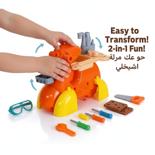 - 👷♂️ 【عدة 2 في 1: من دراجة إلى ورشة عمل】: تبدأ كلعبة تفكيك وتركيب ممتعة لتجميع دراجة نارية رائعة، ثم تتحول بسهولة إلى طاولة أدوات ثابتة (ورشة عمل) ليبدأ المهندس الصغير في مشاريعه الإبداعية.