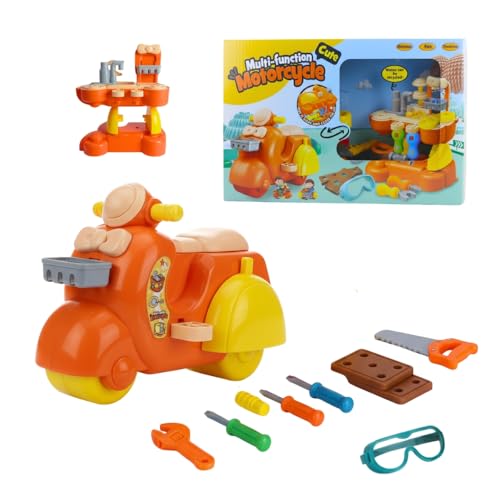 Generic - عدة المهندس الصغير 2 في 1 لعبة دراجة نارية تتحول إلى ورشة عمل مع طاولة أدوات وملحقات، لعبة تفكيك وتركيب تعليمية، برتقالي وأصفر