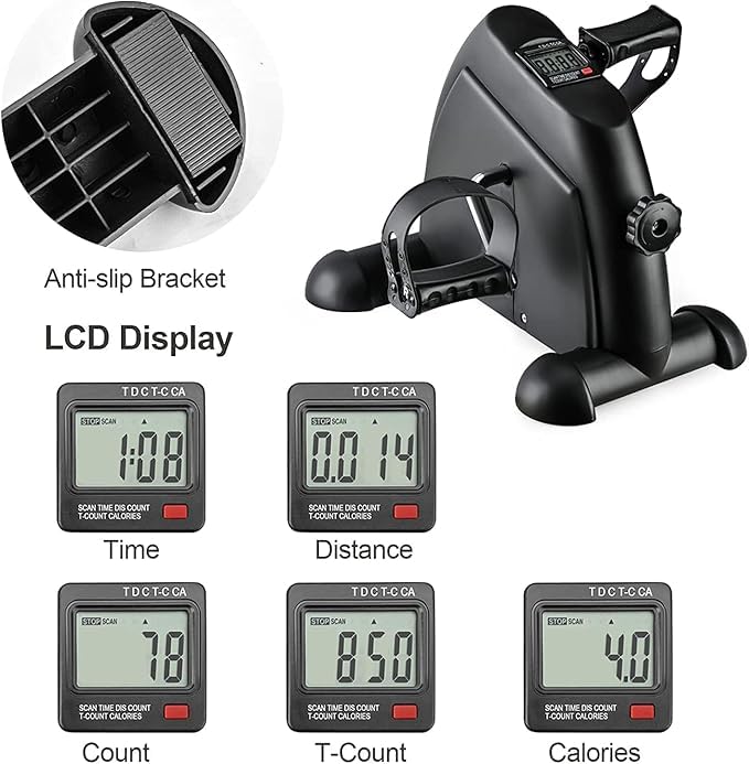 Generic - دراجة تمارين صغيرة، دراجة تمارين محمولة، دواسة تمرين تحت المكتب مع شاشة LCD، دواسة تمرين للقدم والذراع والساق