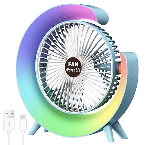 Generic - مروحة تبريد صغيرة ومحمولة للمكتب الشخصي، بتدفق هواء هادئ وثلاث سرعات قابلة للتعديل وإمالة بزاوية 180°، تصميم قابل لإعادة الشحن عبر منفذ USB، للمكتب ولغرفة النوم وللتخييم، مقاس 12.7 سم