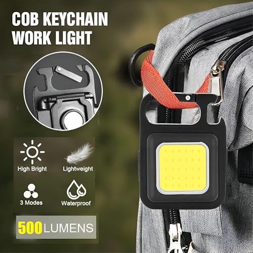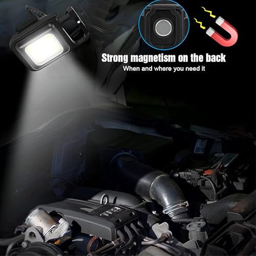 Generic - كشاف صغير - صغير قابل لإعادة الشحن عبر USB - مصباح LED COB محمول بقوة 800 لومن مع سلسلة مفاتيح، تصميم مقاوم للماء، مشبك مغناطيسي، 4 إعدادات إضاءة، رائع للتخييم والعمل ومواقف الطوارئ (2 قطعة)