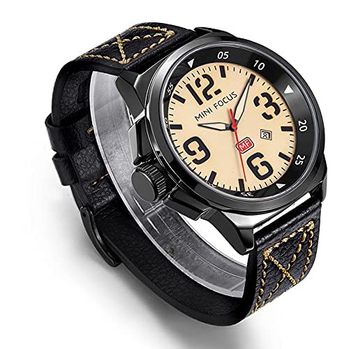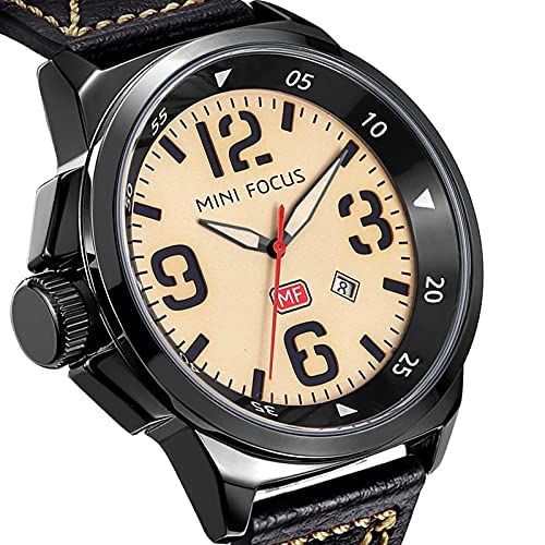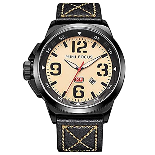 MF MINI FOCUS - ميني فوكس ساعة كاجوال للرجال ، انالوج بعقارب ، حزام جلد ، اخضر ، MF0004G-02
