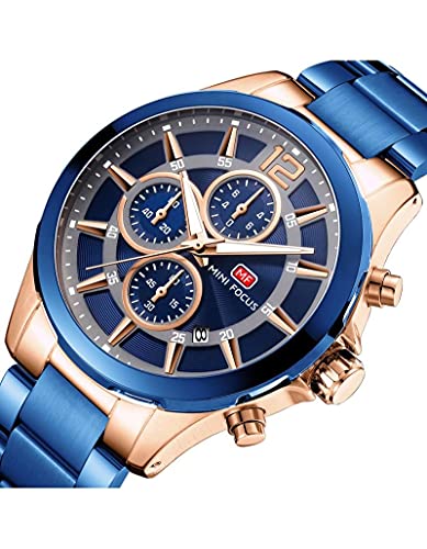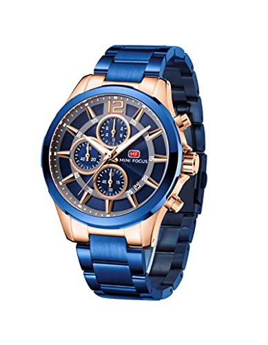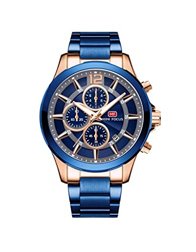 MF MINI FOCUS - ساعة من ميني فوكس للرجال، عرض تناظري، سوار معدني