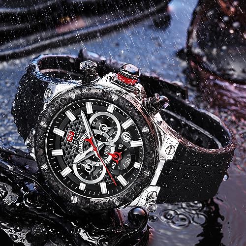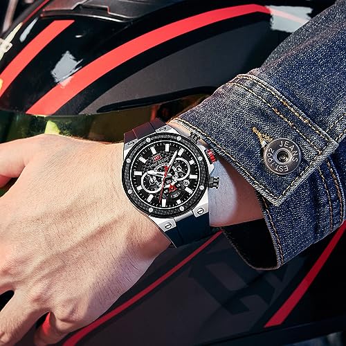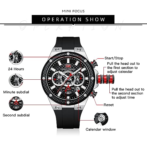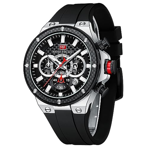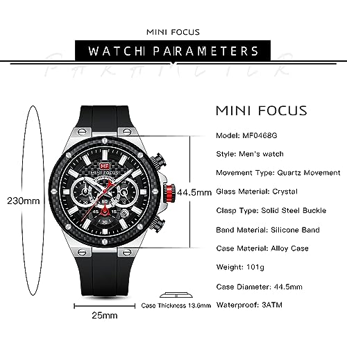 MF MINI FOCUS - ساعة من ميني فوكس للرجال بسوار أسود وعقارب مضيئة انالوج، كرونوغراف مع تقويم ومقاومة للماء