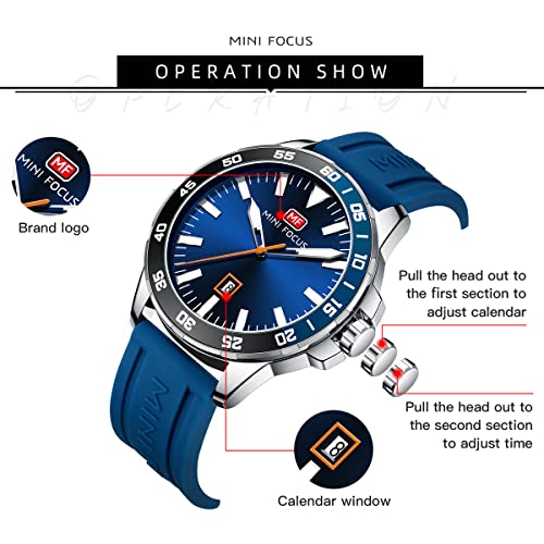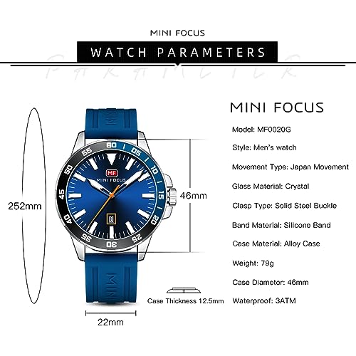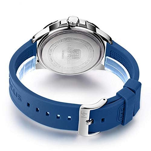 MF MINI FOCUS - ساعة كوارتز انالوج بعقارب وسوار سيليكون للرجال من ميني فوكاس - MF0020G.02 سوار، بمينا أزرق