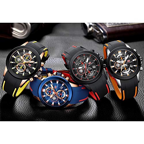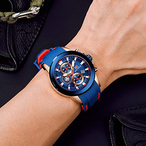 MF MINI FOCUS - ساعة من ميني فوكس للرجال، بمينا زرقاء، عرض تناظري، مقاومة للماء مع تاريخ تلقائي