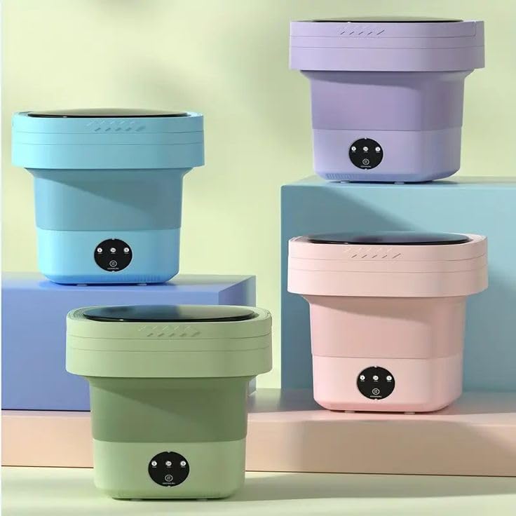 - غسالة محمولة قابلة للطي: غسالة ملابس صغيرة مثالية للشقق والسفر والتخييم، تتميز بتصميم قابل للطي لتوفير المساحة وسهولة التخزين والنقل
