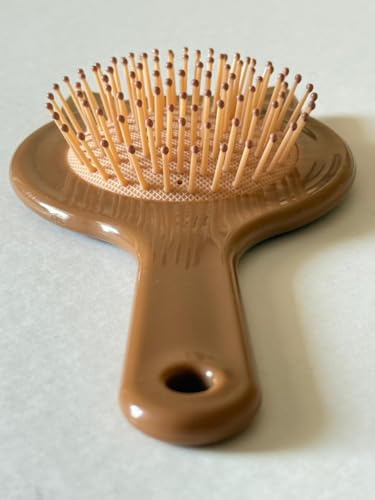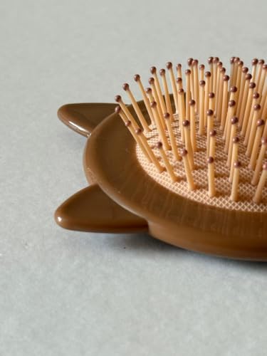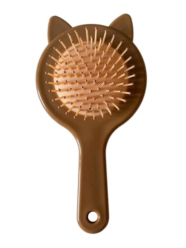 Generic - فرشاة شعر صغيرة الحجم مزينة بأذني قطة، تعمل كمشط لفك التشابك أثناء السفر وكفرشاة تدليك بوسادة هوائية تناسب الشعر المبلل والجاف، (بني)