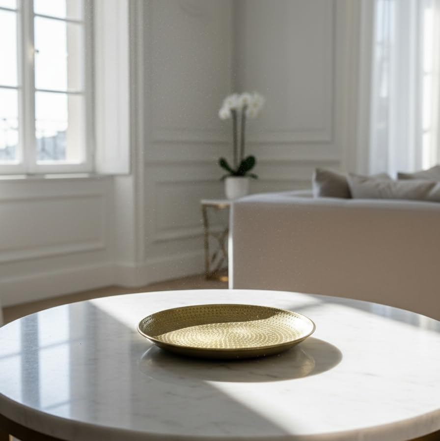 Generic - صينية ذهبية مطروقة صغيرة بقطر 12 سم، صينية ذهبية مطروقة صغيرة الحجم وأنيقة مصنوعة لرفع مستوى سطح الطاولة أو طاولة الزينة