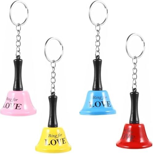 Generic - جرس يدوي صغير من المعدن مع سلسلة مفاتيح مناسب للنداء والاستقبال في المطاعم اجراس للاطفال والحيوانات الاليفة مناسبة لديكور الزفاف لبنى احمر