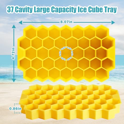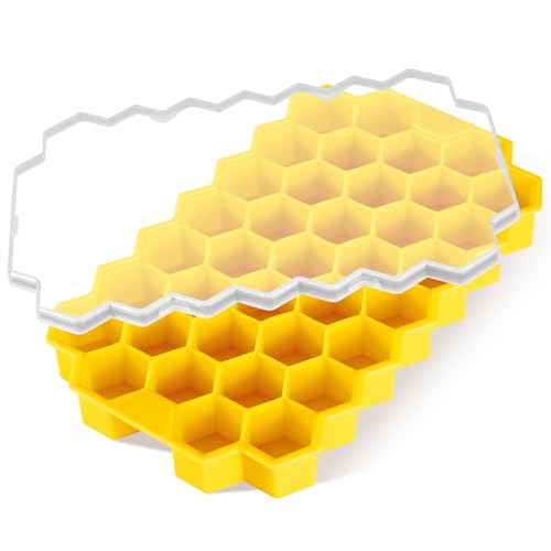Acosexy - صينية مكعبات ثلج صغيرة مع غطاء وسلة، 37 قطعة من صواني الثلج للفريزر، صانع ثلج صغير، قوالب مكعبات الثلج، صواني مكعبات ثلج صغيرة، صواني ثلج مجروشة للويسكي ومشروب العصير (يرو، 37 قطعة مكعبات ثلج)