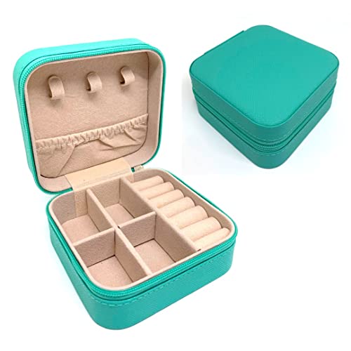 Generic - علبة مجوهرات صغيرة محمولة مصنوعة من الجلد الصناعي والقطيفة لتنظيم وتخزين المجوهرات للسلاسل والخواتم والأساور للسفر هدية لعيد الميلاد للنساء والبنات، لون اكوا