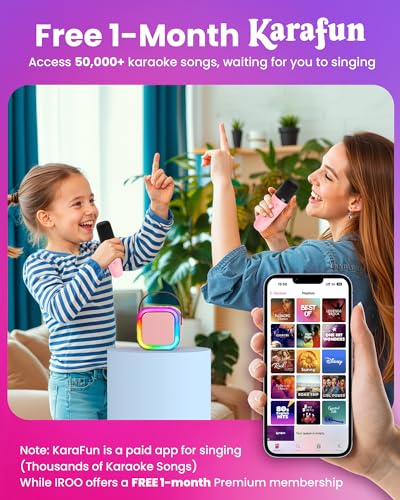 IROO - اي ار او او الة كاريوكي صغيرة للاطفال، افكار هدايا عيد الميلاد والكريسماس 2025 للبنات من سن 4 و5 و6 و7 و8 و9 و10 و12 سنة فما فوق، مشغل MP3 محمول مع 2 ميكروفون لاسلكي للحفلات