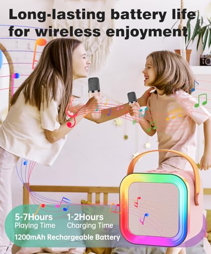 Feix g - مكبر صوت ميني كاريوكي للاطفال والكبار، بلوتوث محمول مع 2 ميكروفون لاسلكي، هدايا عيد الميلاد للبنات والاولاد من سن 4 و5 و6 و7 و8 و9 و10 و11 و12 سنة فما فوق (زهري - 2 ميكروفون)