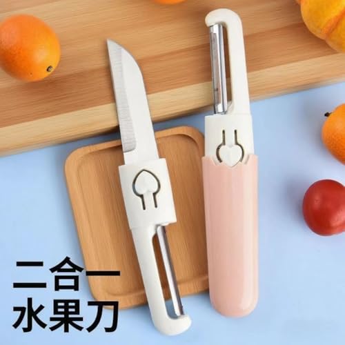 Generic - سكينة ومقشرة صغيرة مع حافظة واقية، طقم قطاعة فواكه وخضروات صغيرة ومحمولة بقفل أمان للسفر والمكتب والمنزل والمطبخ وللتنقل، عبوة واحدة