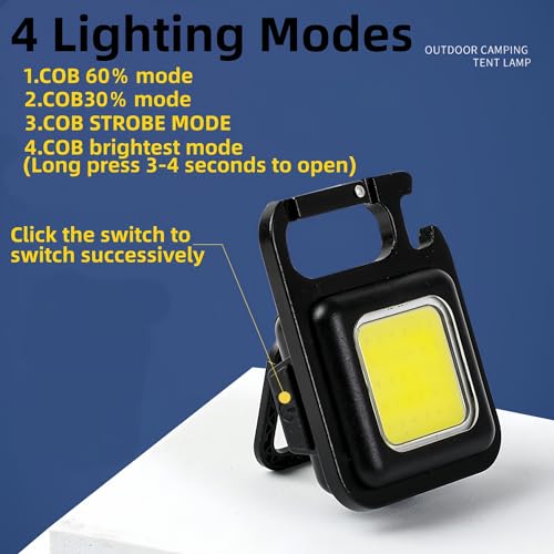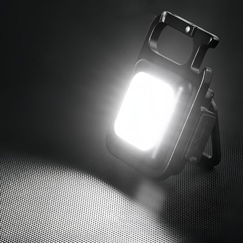 DotCom - مصباح يدوي ليد صغير بسلسلة مفاتيح محمول بإضاءة COB للتخييم وشحن USB مناسب للعمل والصيد (عبوة من قطعتين)