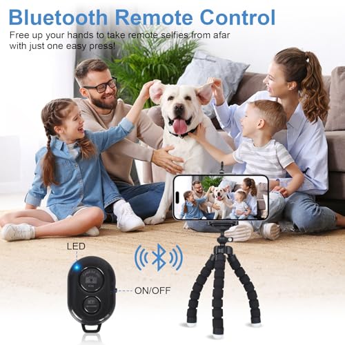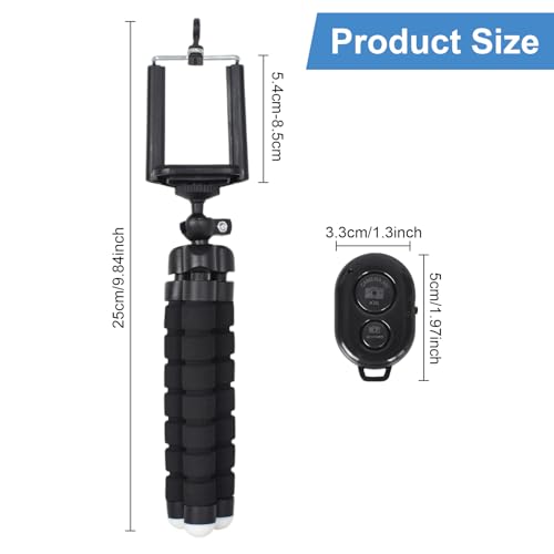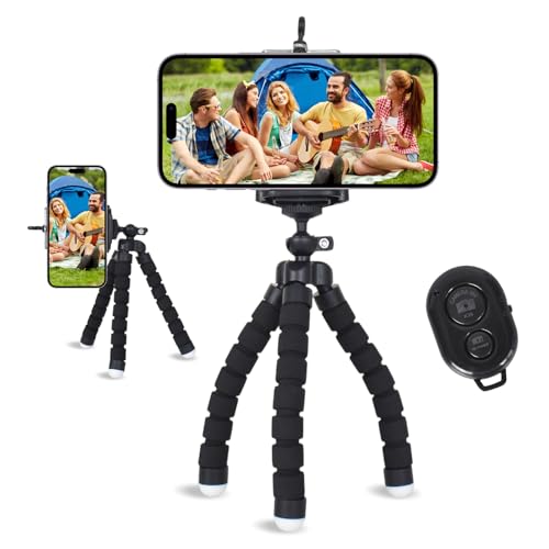 Homirty - حامل ثلاثي القوائم صغير للموبايل مع جهاز تحكم عن بعد لاسلكي ومشبك، حامل ثلاثي القوائم اسفنجي مرن للسفر والتقاط صور السيلفي والتخييم